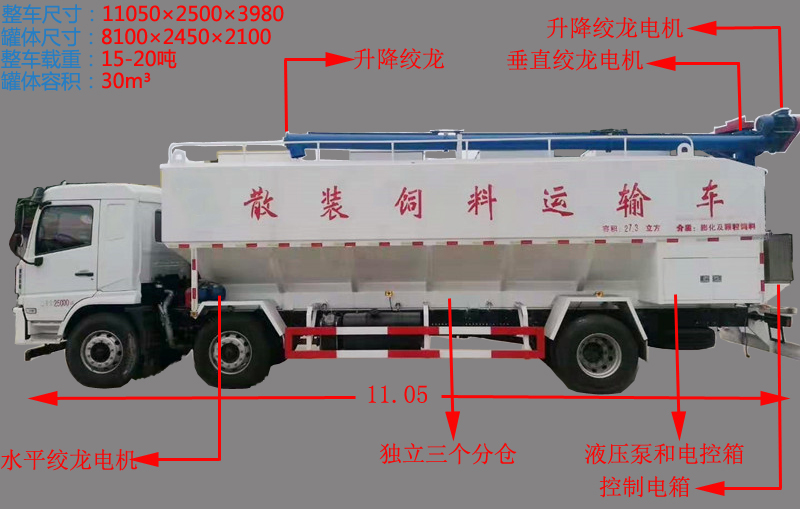 (4)料罐容積30-35方4個獨立倉,實載:豬料 17-19噸,雞料19-21噸