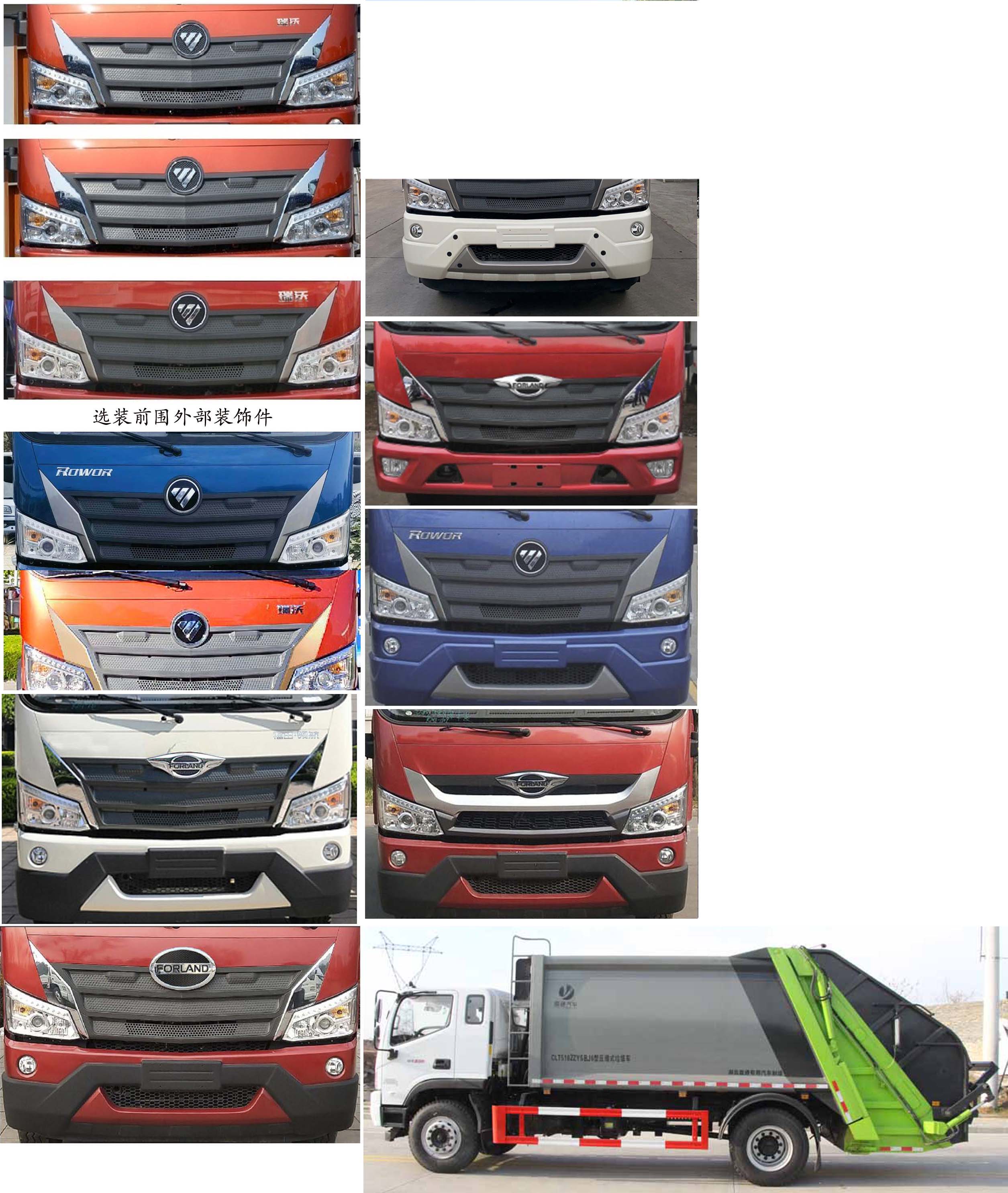福田壓縮垃圾車(chē),壓縮對(duì)接式垃圾車(chē),領(lǐng)航壓縮垃圾車(chē),壓縮垃圾站,該車(chē)主要專(zhuān)用裝置由箱體、壓縮系統(tǒng)組成,用于垃圾的收集與清運(yùn);隨底盤(pán)選裝新風(fēng)格格柵.選裝新前格柵及新logo.選裝新款前格柵,新款保險(xiǎn)杠,新造型前霧燈;選裝側(cè)部及后部結(jié)構(gòu);安裝無(wú)翻轉(zhuǎn)機(jī)構(gòu)時(shí)無(wú)后伸,選裝翻桶裝置,翻斗裝置時(shí),后伸380mm,選裝密封斗,擺臂裝置時(shí),后伸280mm;整車(chē)長(zhǎng)(mm)/軸距(mm)/前懸(mm)/后懸(mm)/后伸(mm)對(duì)應(yīng)關(guān)系為:8860/4500/1260(1240)/2720(2740)/380,8760/4500/1260(1240)/2720(2740)/280,8480/4500/1260(1240)/2720(2740)/0,8100/3950/1260(1240)/2510(2530)/380,8000/3950/1260(1240)/2510(2530)/280,7720/3950/1260(1240)/2510(2530)/0;側(cè)防護(hù)裝置,材料:Q235碳鋼,連接方式:螺栓連接;后部防護(hù)為專(zhuān)用裝置代替,后部防護(hù)離地高度(mm):440;ABS型號(hào)為CM4XL-4S/4M,生產(chǎn)廠家為廣州瑞立科密汽車(chē)電子股份有限公司;安裝具有衛(wèi)星定位功能的行駛記錄儀;發(fā)動(dòng)機(jī)型號(hào)/油耗申報(bào)值(L/100km)對(duì)應(yīng)關(guān)系為:WP4.1NQ190E61/25.89,F4.5NS6B190/26.28,YCS04200-68/25.88;選裝直接供電式ETC車(chē)載裝置.采用4500mm,3950mm軸距的底盤(pán)改裝.隨底盤(pán)選裝限速裝置,限速88km/h. |