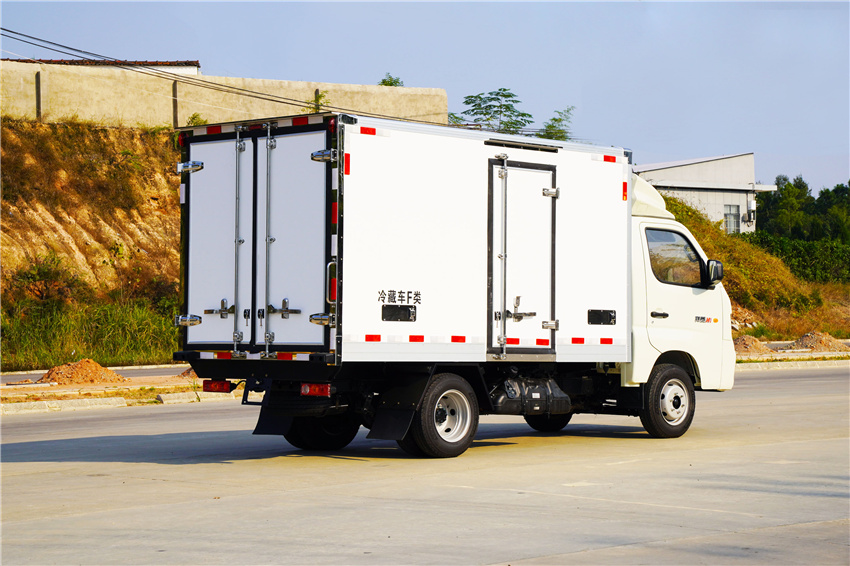 福田祥菱M1冷藏車采用國六汽油東安115馬力(DAM15KR發動機,5變速箱,2750軸距,高配,原廠空調,后雙胎,5檔變速箱,175R14后雙胎,122后橋,ABS,電動助力轉向