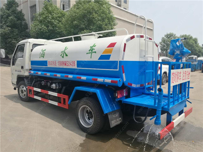 6、灑水車前噴頭位置較低,靠近地面,噴灑壓力較大,可用于沖洗路面;后噴頭位置較高(灑水車后噴頭一般左右各安裝一個),灑水面較寬,可用于公路施工灑水,使用后噴頭時,應將前噴管關閉;使用可調噴頭灑水時,灑水寬度可根據需要調整。灑水寬度越寬,中間重疊量越少,灑水密度越均勻。