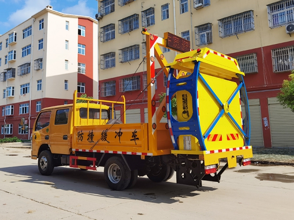 小多利卡D6防撞緩沖車采用東風小多利卡底盤。防撞緩沖模塊升降采用液壓控制,過程平穩、安全、機械化作業程度高,操作方便。防撞緩沖模塊整體引進美國Energy Absorption Systems公司技術產品Alpha 70K TMA™防撞緩沖模塊。