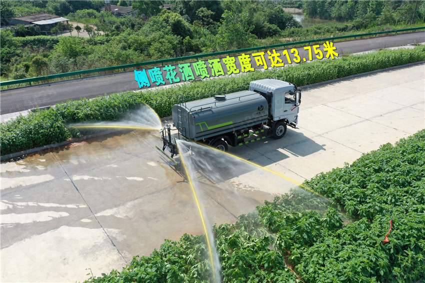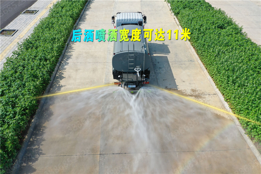 東風華神10方抑塵車專用功能配置:罐體有效容積9噸,采用武鋼4mm 優質碳鋼一次卷壓無縫成型,專用部分配專用灑水泵,帶前沖、后灑、側噴、后工作平臺及灑水高壓炮。配消防接口、自流閥,2根與罐體等長輸水管,水位計,1個爬梯,兩側及后杠。灑水泵自吸高度為7米,出水量為60立方米每小時,灑水寬度大于14米,后工作平臺水炮可調成直沖狀、大雨、中雨、小雨、毛毛雨,直沖射程25米左右,霧狀射程15米左右。(可選配:錳鋼罐體、加粗管道、駕駛室一鍵操作、氣動控制、罐體防腐、高端灑水泵)