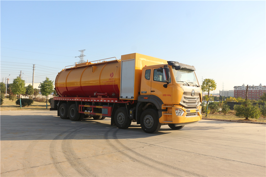 重汽35方清洗吸污車,豪沃35方疏通吸污車,管道疏通車,市政下水道清理車,高壓清洗吸污車,該車專用裝置主要為污水罐和清水罐,用于下水道吸污及疏通。隨底盤選裝駕駛室;罐體尺寸(直段長×直徑)(mm):7100×2350,其中罐體前端為清水罐(直段長3150mm);后端為污水罐(直段長3950mm)。兩罐獨立,且不能同時滿載。清洗功能時用清水罐,吸污功能時用污水罐。污水罐總容量14.57立方米,污水罐有效容積13.88立方米,介質:液態(tài)污物,密度:800千克/立方米;清水罐總容量11.66立方米,清水罐有效容積11.1立方米,介質:水,密度:1000千克/立方米。采用軸距(mm):1800+4600+1350,1800+4575+1400;側/后防護材料均為:Q235碳鋼,連接方式均為:螺栓連接,后部防護截面尺寸(mm):200×60,后部防護離地高度(mm):480;ABS系統(tǒng)型號為446 004 6300,生產企業(yè)為威伯科汽車控制系統(tǒng)(中國)有限公司。選裝EBS,EBS系統(tǒng)控制器生產企業(yè):威伯科汽車控制系統(tǒng)(中國)有限公司,型號:EBS3。選裝罐體頂部護欄樣式,選裝側面清洗管,選裝后罐口液壓開啟樣式,選裝后部閥門,選裝后部清洗管卷盤樣式。選裝前部不帶卷簾門保護箱.選裝尿素箱位置,選裝油浴式空濾器,,選裝左置電瓶箱,選裝大油箱,選裝雙腔大油箱,選裝消聲器及位置,選裝踏步,選裝前拖鉤。 |